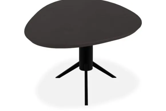 De centrale metalen poot met slanke, uitwaaierende basis geeft de tafel een moderne en luchtige uitstraling. De combinatie van het donkere hout en het metalen onderstel maakt deze Bodari perfect voor een industrieel interieur, waar stoere materialen en eenvoud samenkomen. Tegelijk geeft het blad met verfijnde afwerking een stijlvol accent dat goed past bij een hotel chic sfeer, waarin luxe en comfort centraal staan.