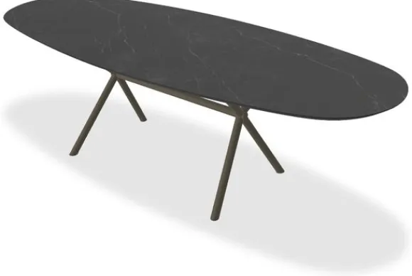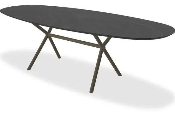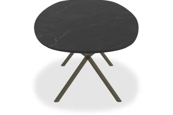 Deze eettafel wordt geleverd met een metalen spinpoot in een anodic brown. Onder de opties in de configurator is het mogelijk om te kiezen voor een andere kleur of een geheel andere tafelpoot.