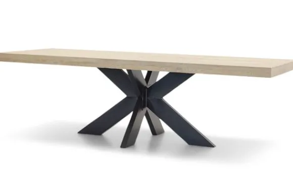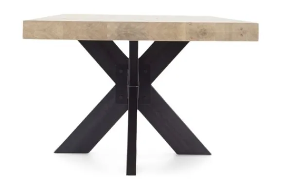 Deze tafel heeft een blad van 8 cm dik (4+4cm opgedikt) en is gemaakt van massief eikenhout. Wanneer je kiest voor een tafel breder dan 260 cm dan zit er onder het blad een extra versteviging tegen het doorbuigen. Deze tafel is standaard uitgevoerd met een houten poot, deze wordt geleverd in dezelfde kleur als het blad.
