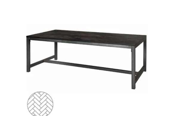 Eettafel Ziano van het merk Tower Living is helemaal trendy, met zijn stoere design, zwarte kleur en visgraat motief. Deze tafel is beschikbaar in verschillende afmetingen. Het tafelblad is gemaakt van prachtig gerecycled hout en de poten van metaal. De meubelen uit deze collectie worden gezandstraald, wat ervoor zorgt dat de nerven in het oude hout extra geaccentueerd worden. Ziano heeft een luxe en chique uitstraling, maar past ook perfect in een industriële inrichting.