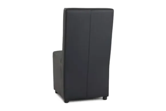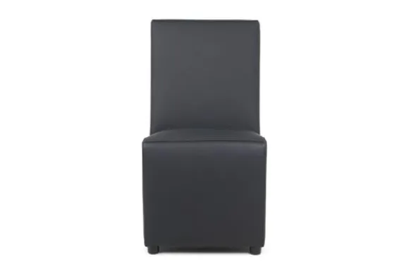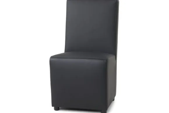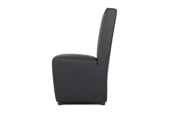 Deze stoel wordt standaard uitgevoerd met glijdoppen, een gladde rug en zonder handgreep.