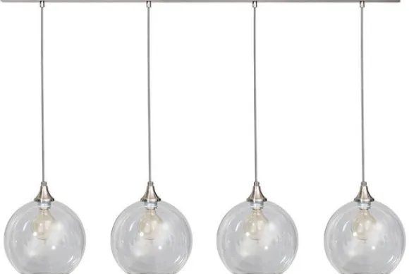 Hanglamp Calvello van het merk ETH is niet alleen mooi wanneer hij brand. Overdag is het ook zeker een plaatje om naar te kijken. Deze lamp heeft vier glazen bollen en wordt geleverd inclusief beugels. Doormiddel van deze beugel kan je de lamp richten naar verschillende plekken. De lamp is verstelbaar in hoogte, de maximale hoogte is 120 cm. De Calvello lampencollectie bestaat uit een hang- en plafondlamp. De lamp wordt exclusief lichtbron geleverd. Doordat de lichtbron niet meegeleverd is, kun je zelf bepalen hoeveel licht je wilt en in welke kleur. Op de afbeelding is gebruik gemaakt van een kooldraad led lamp. Deze lichtbron komt mooi tot zijn recht in deze lamp, omdat je door de lamp heen kunt kijken.