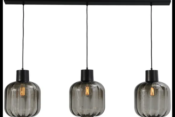Hanglamp2161-05-05-28-130-3 uit de Lett Rib serie van het merk Masterlight heeft drie lampen met een donkere glazen lampenkap. Doordat de lichtbron niet meegeleverd is, kun je zelf helemaal bepalen hoeveel licht je wilt en in welke kleur. De maximale wattage is 75 watt per lamp en het heeft een E27 fitting. De lamp is dimbaar via een exlusieve externe dimmer in combinatie met een compitabele lichtbron.