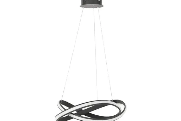 Hanglamp Waves van het merk Highlight heeft een speelse lichtverdeling door de kringel. In de zwarte kringel zit een LED-strip verwerkt met een gelijkmatige, warme lichtverdeling. De hanglamp is verstelbaar in hoogte, de maximale hoogte is 140 cm.