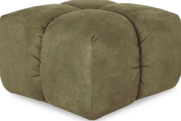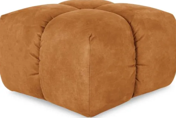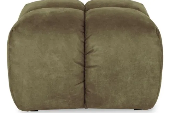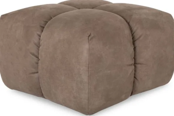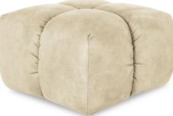 Hocker Trentino van het merk Moderno heeft een geblokt stikpatroon en loopt tot net boven de grond.