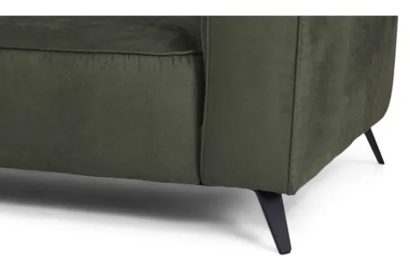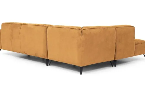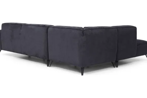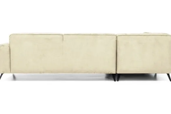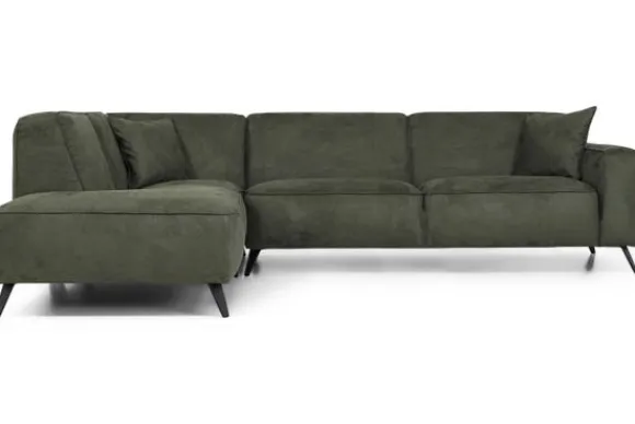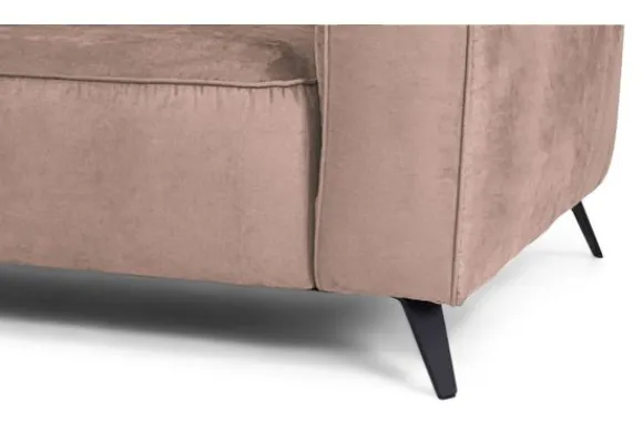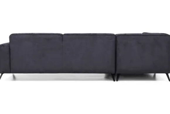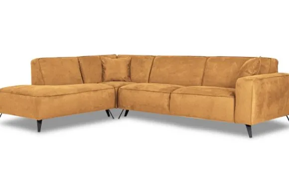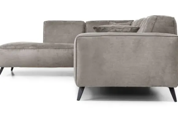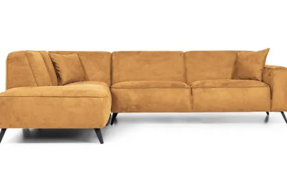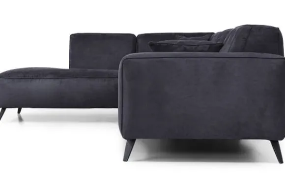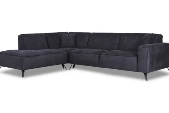 Deze hoekbank wordt standaard uitgevoerd met zwart metalen poten en exclusief sierkussens.