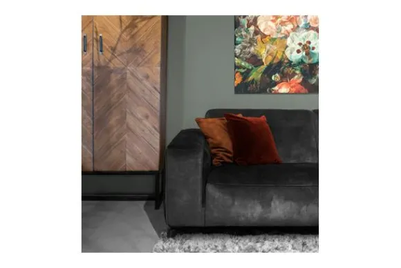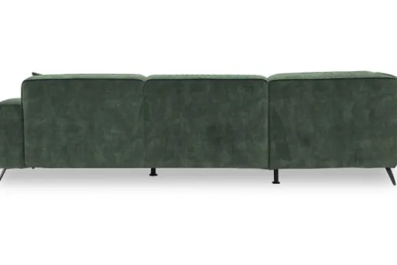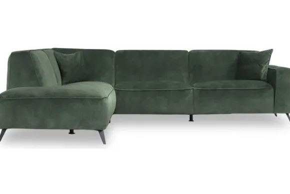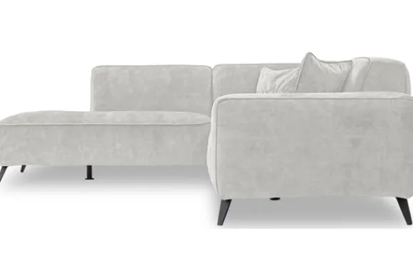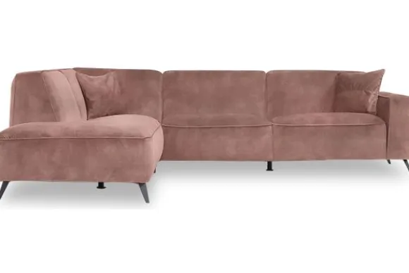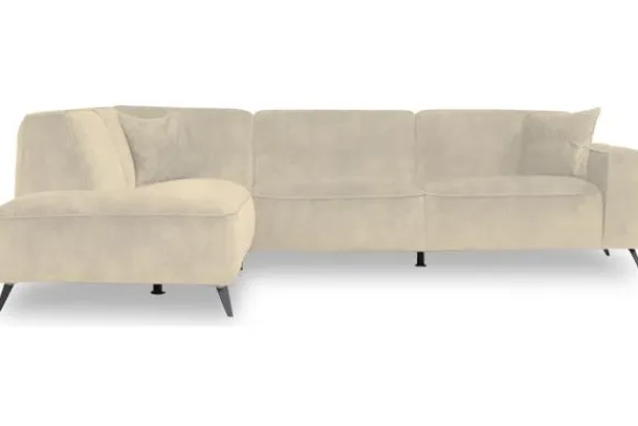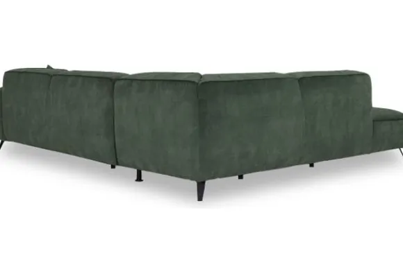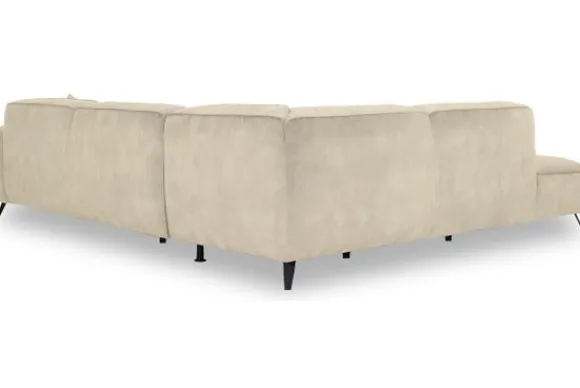 Deze hoekbank wordt standaard uitgevoerd met zwarte metalen pootjes en exclusief sierkussens.