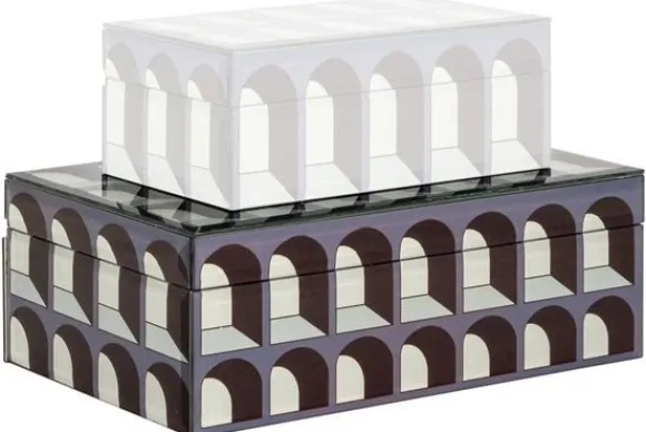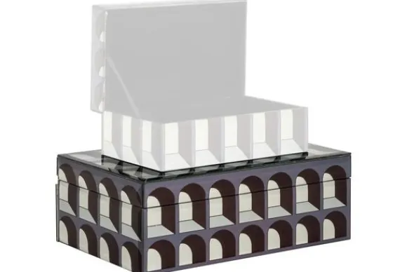 Juwelenbox Vaya Groot 212164 van het merk Richmond Interiors heeft een unieke look door de bogen die op de zijkanten van de juwelenbox zijn afgebeeld. De juwelenbox is gemaakt van glas en MDF en ook verkrijgbaar in een kleiner formaat.