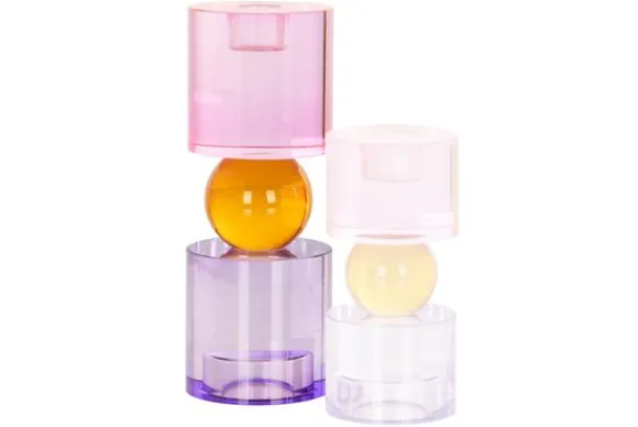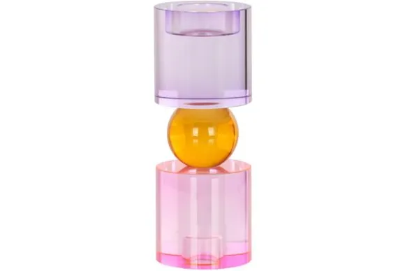 Kandelaar Zahra 212039 groot van het merk Richmond Interiors is vervaardigd uit kristal. Deze kandelaar is voor zowel een dinerkaars als een klein waxinelicht, waardoor de kandelaar op twee manieren te gebruiken is. Kandelaar Zahra bestaat uit de kleuren roze, paars en oranje.