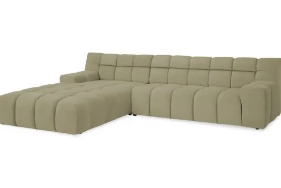 Je kunt kiezen uit verschillende materialen, waaronder stoffen als velvet en boucle. Daarnaast is de bank verkrijgbaar in uiteenlopende kleuren.