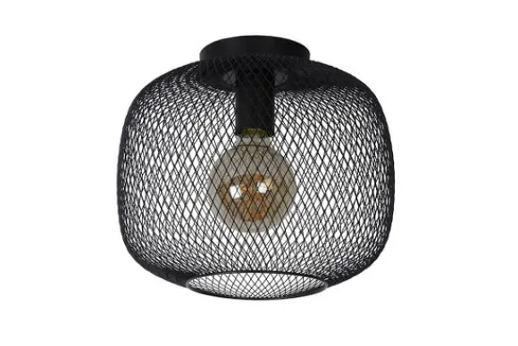 Plafondlamp Mesh van het merk Lucide heeft een bolvormig stalen gaas met een diameter van 30 centimeter die zich rond de lichtbron vormt. Door de compacte afmetingen past deze plafondlamp in zowat elke ruimte. De plafondlamp Mesh is aan het plafond te bevestigen dankzij het meegeleverde montageplaatje. Dit montageplaatje is netjes verstopt onder een omranding in dezelfde kleur als de armatuur. De lamp is tevens gemakkelijk aan te sluiten op een dimmer.