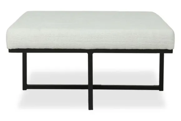 De getoonde poef is uitgevoerd in de stof Bouclé Snow met zwarte poten, maar is beschikbaar in verschillende stofferingen en kleuren. Ook de pootkleur kan naar wens worden gekozen.