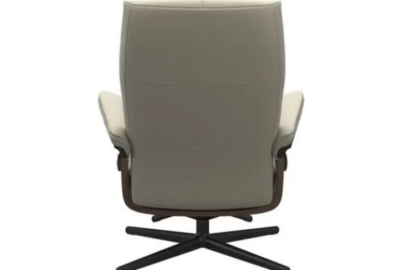 Relaxfauteuil David Cross van het merk Stressless is verkrijgbaar in alle kleuren. Tevens is de fauteuil leverbaar in stof en rundleder. Je kunt bij deze fauteuil kiezen uit diverse maten zoals Small, Medium en Large. Deze fauteuil heeft een Plus en Glide Systeem: Aan beide zijden van de fauteuil zit een knop waarmee je de weerstand van de stoel kan aanpassen naar eigen behoefte. Door de knoppen in tegengestelde richting te draaien stel je jouw ideale relaxpositie samen. Op die manier krijgt de nek en de onderrug goede onderstuening. Door de rugleuning naar voren te buigen activeer je de slaapfunctie. Op het moment dan je weer rechtop komt stelt de stoel zichzelf weer bij naar de normale stand.