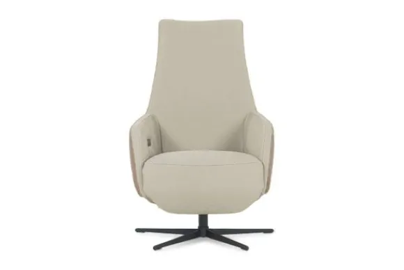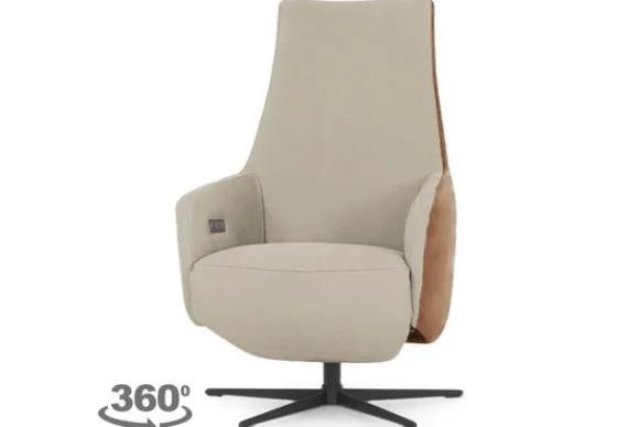 Deze relaxfauteuil wordt standaard uitgevoerd met een 2-motorig relaxsysteem en met een zwarte metalen stervoet.