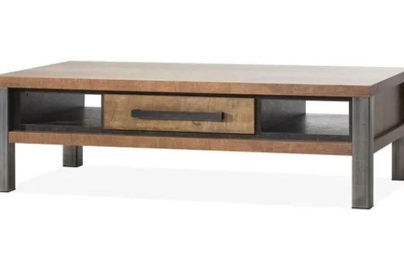 Salontafel Kahlua – Kinga is uitgevoerd in de kleur Old Teak en heeft een warme en stoere uitstraling. De natuurlijke houtlook past goed in moderne, landelijke en industriële interieurs.