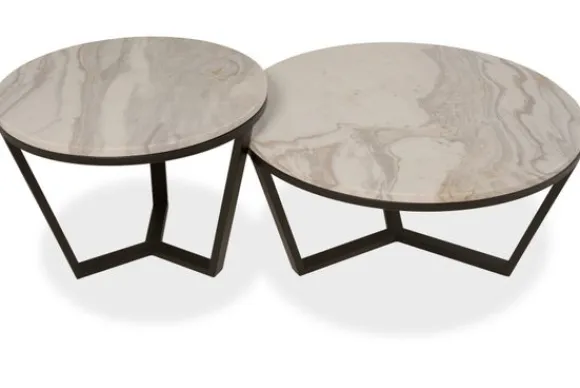Salontafelset Sian van het merk BL Design bestaat uit 2 stijlvolle ronde tafels in verschillende hoogtes en diameters, hier uitgevoerd in het luxueuze Spider White marmer. De afmetingen van de tafels zijn: Ø80 x H38 cm en Ø60 x H46 cm.