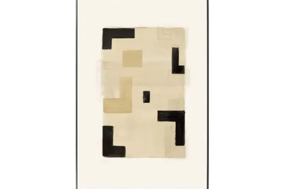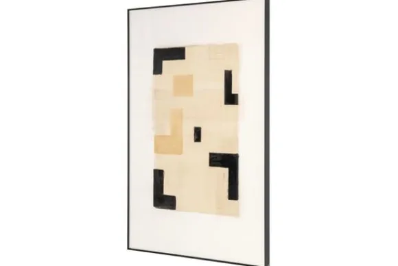 Schilderij Vortex 214074 van het merk Richmond Interiors is een abstract kunstwerk waarin beige vlakken en zwarte accenten samen een krachtig lijnenspel vormen. Het geometrische ontwerp brengt een moderne uitstraling die rust en spanning tegelijk oproept.