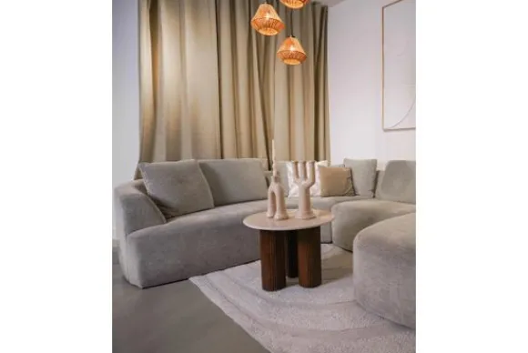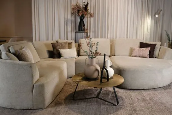 Hoekbank Marjolein van het merk Fris Lifestyle is verkrijgbaar in alle kleuren en verschillende materiaalsoorten zoals stof, velvet en microvezel. Daarnaast is deze bank verkrijgbaar in verschillende afmetingen en opstellingen. De bank heeft een knusse uitstraling dankzij de ronde vormen en de dubbele rugkussens. De armleuning loopt naadloos door in de rugleuning, dit geeft een moderne look. De zitting is gevuld met koudschuim wat voor een stevige zit zorgt. De rugkussens hebben een vulling van koudschuim met een bovenlaag van siliconenvezels, hierdoor zijn deze wat zachter.