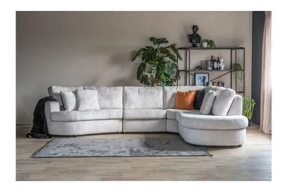 Hoekbank Cassidy van het merk Kenzo is beschikbaar in alle kleuren en in verschillende materiaalsoorten zoals stof, velvet en rundleder. Deze bank heeft een zitting die doorloopt tot net boven de grond. Daarnaast valt deze bank op door de ronde vormen.