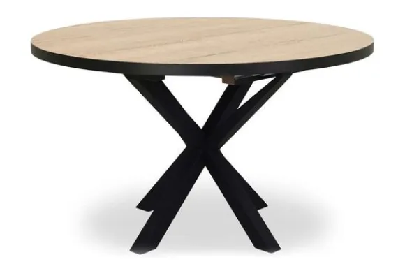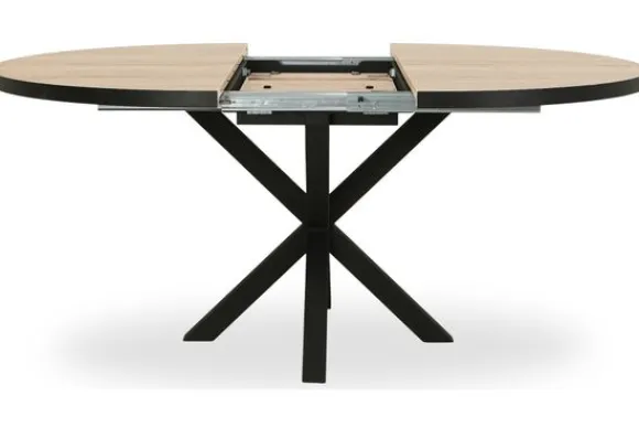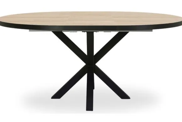 Uitschuiftafel Juster-Isla van het merk Lamulux is hier afgebeeld in de frisse kleur Fresh Oak. Deze lichte houttint geeft de tafel een natuurlijke uitstraling die goed past in zowel moderne als Scandinavische interieurs. De tafel is verkrijgbaar in meerdere afmetingen en kleuren en staat stevig op een zwart metalen onderstel. Het blad is eenvoudig uitschuifbaar waardoor je direct meer ruimte creëert. In uitgeschoven stand verandert de vorm in een ovaal tafelblad.