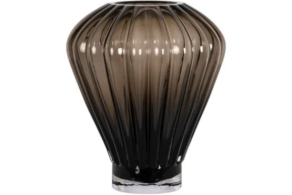Deze glazen vaas combineert karakter met eenvoud. De diepte van de bruine kleur geeft haar een luxe en rustgevende uitstraling, terwijl de transparante onderzijde zorgt voor een luchtig accent.