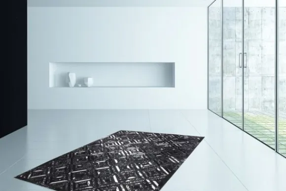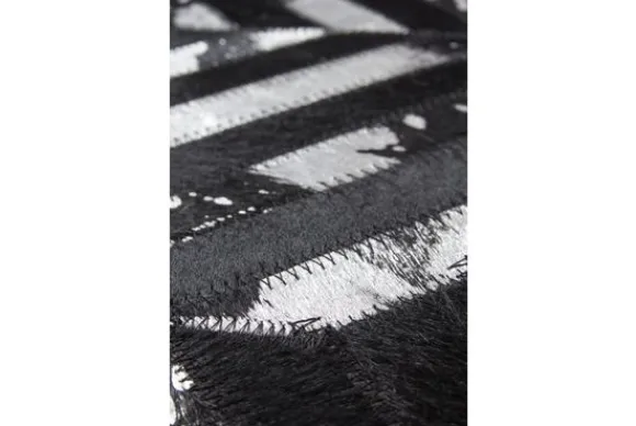 Vloerkleed Spark 410 Zwart Zilver van het merk Divendo is verkrijgbaar in verschillende afmetingen, designs en kleuren. Het prachtige lederen tapijt met zilverkleurig metaalfolie rondt elke elegante inrichtingsstijl vakkundig af. Het hoogwaardige, elegante vloerkleed van 100% leer geeft een luxeus tintje aan de omgeving en zorgt voor een heel bijzondere flair. Het kleed is met de hand gemaakt, dus elk leren tapijt is uniek. Het gebruik van fijne natuurlijke materialen en hoogwaardige afwerking zorgen voor een dynamische uitstraling en maken elk tapijt uniek, omdat natuurlijke producten tot 30% in vorm, kleur en patroon kunnen variëren. Het moderne honingraatpatroon geeft het vloerkleed een bijzonder tintje.