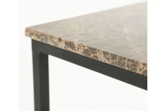 Bijzettafel Rico 96330 van het merk Eleonora is een verfijnd samenspel van kracht en klasse. Met zijn strakke metalen frame in gecoate ijzerafwerking en het elegante blad van gepolijst bruin marmer, straalt deze bijzettafel pure luxe uit.