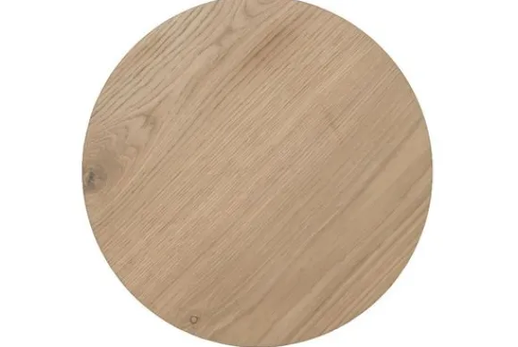 De tafel is gemaakt van samengesteld hout met een toplaag van licht eikenfineer. Dit zorgt voor een stevige en duurzame constructie. Het ronde blad biedt een praktisch oppervlak voor dagelijks gebruik.