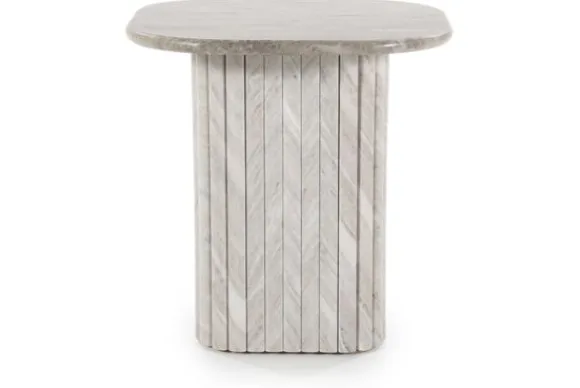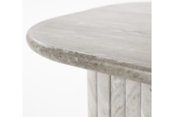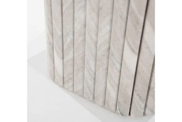 Bijzettafel Dorique 240209 van het merk By-Boo is gemaakt van marmer en heeft afgeronde hoeken. Marmer is een duurzame steensoort en heeft een luxe en stijlvolle uitstraling. De steensoort is een natuurproduct en kenmerkt zich door de unieke afwerkingen en kan zowel grove als gladde delen bevatten. Door de kenmerkende kleurschakeringen en aders is geen product hetzelfde. Zo haal je met een marmer product dus echt iets unieks in huis. Naast deze bijzettafel is de Dorique ook verkrijgbaar als een bijpassende salontafel.