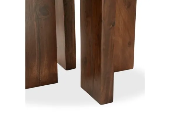 De basis van de tafel is vervaardigd uit massief mangohout, een duurzame houtsoort die bekendstaat om zijn rijke kleurschakeringen en natuurlijke oneffenheden. Van warme, donkerbruine tonen tot zachte, goudgele of roodachtige accenten: elk exemplaar is uniek.
