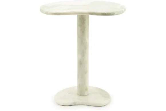 De organische vorm van zowel het tafelblad als de voet zorgt voor een speelse, maar verfijnde uitstraling. De cilindervormige poot geeft het geheel een krachtige basis, terwijl het gladde, gepolijste marmer een luxueuze glans toevoegt. Dit maakt de Verde bijzettafel perfect als blikvanger naast een bank, fauteuil of als decoratief element in een modern, industrieel of hotel chique interieur.