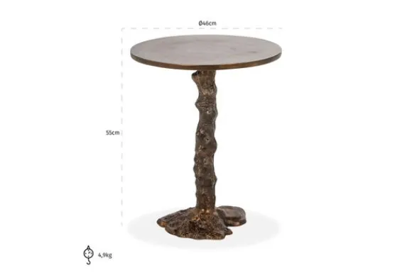 Bijzettafel Misty 212414 van het merk Richmond Interiors is gemaakt van aluminium in de kleur brons. De bijzettafel heeft een uniek design, dit zorgt ervoor dat de bijzettafel een eyecatcher in jouw interieur is! Decoreer je mooiste vaas op de tafel of schuif de tafel aan bij je bank voor extra versnaperingen erop te leggen, zodat je deze tijdens het film kijken dicht bij de hand hebt.