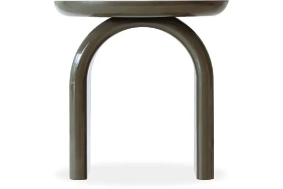Bijzettafel Merrick 214207 van het merk Richmond Interiors in de kleur Green heeft een opvallend rond blad met een stevige boogvormige poot. De hoogglans afwerking zorgt voor een strakke, moderne look.