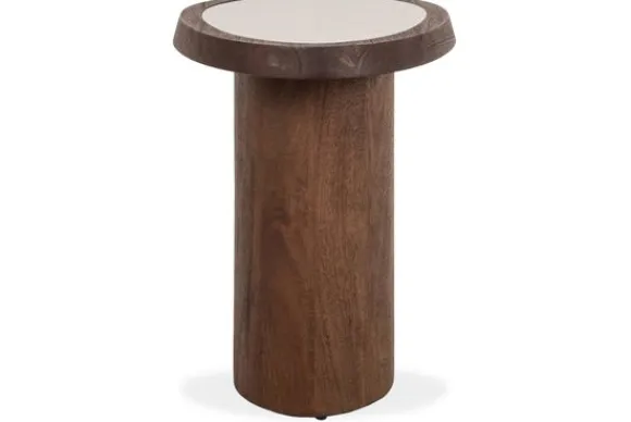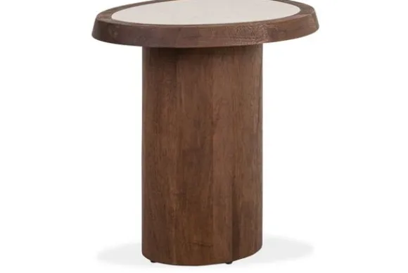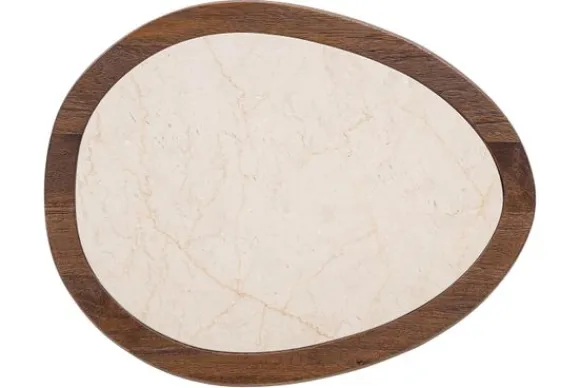Bijzettafel Melrose 214453 van het merk Richmond Interiors combineert de warmte van mangohout met de luxe uitstraling van marmer. Het ovale blad, omlijst door een robuuste houten rand, zorgt voor een natuurlijke en stijlvolle uitstraling.