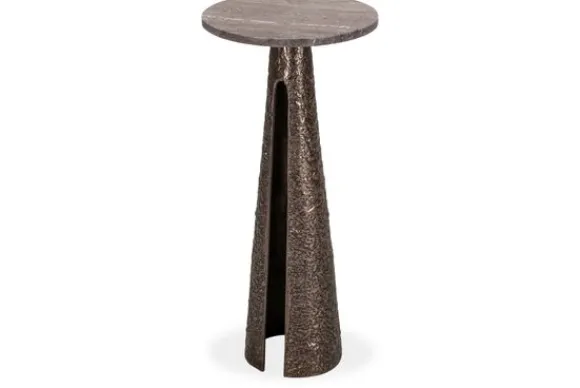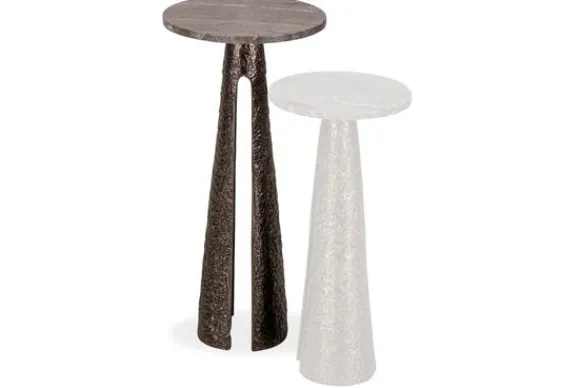 Bijzettafel Eldora 214499 van het merk Richmond Interiors heeft een rond blad van travertin dat direct opvalt door de natuurlijke kleurnuances en adering. Omdat travertin een natuursteen is heeft elke tafel een uniek blad met een eigen uitstraling.