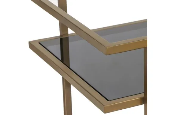 Trolley X.O. 212969 van het merk Richmond Interiors is gemaakt van brass (staal in mat goud) en gerookt glas. Brass is een legering van koper en zink, dat vervolgens wordt afgewerkt met een geborsteld effect. Dit zorgt voor een matte afwerking. Brass is eenvoudig schoon te maken met een lichtvochtige doek, het nadrogen van het oppervlak zorgt voor een streeploos resultaat. De trolley is multifunctioneel, je kunt er bijvoorbeeld je drankjes op zetten, maar ook tijdschriften of andere mooie decoratie.