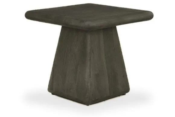 Salontafel Asti van het merk Tower Living straalt ingetogen charme uit dankzij het olijfbruine mangohout en het krachtige, geometrische ontwerp. Het vierkante blad met afgeronde hoeken rust stevig op een taps toelopende voet, wat de tafel een solide en sculpturale uitstraling geeft met een natuurlijk verfijnde twist.