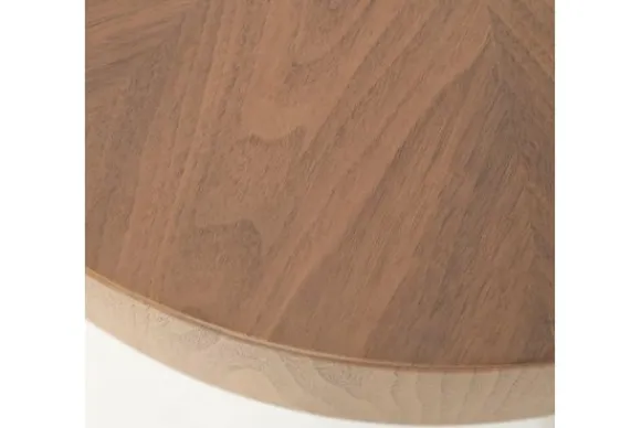 Salontafel Bobbie van het merk Eleonora is een tijdloos designstuk dat luxe en warmte uitstraalt. De royale, ronde vorm en de stevige kolompoot zorgen voor een krachtige, moderne uitstraling. Vervaardigd uit walnoot fineer en afgewerkt met een subtiele laklaag, brengt deze tafel een natuurlijke elegantie in jouw interieur.