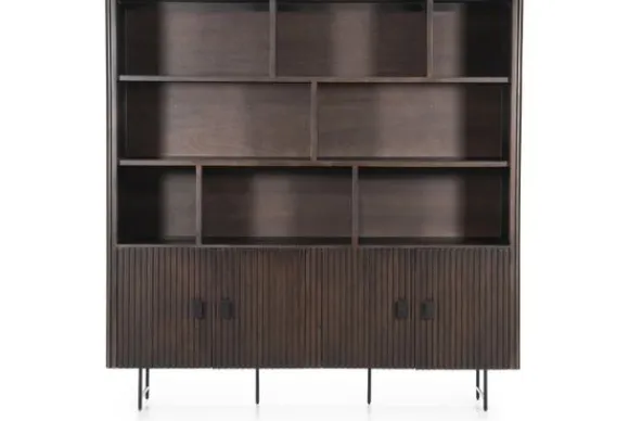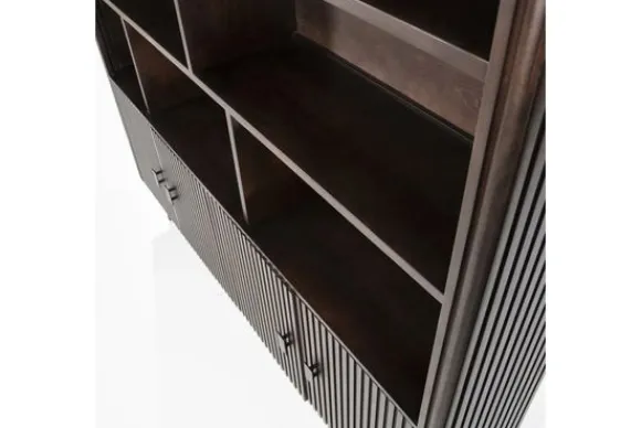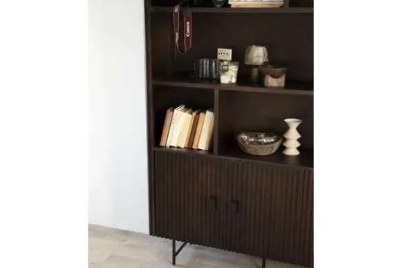 De kast beschikt over acht open vakken en vier vakken achter deuren, waardoor je volop ruimte hebt voor boeken en accessoires. De boekenkast is ook verkrijgbaar in zwart.