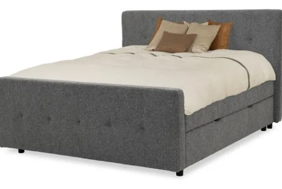 Boxspring Lucent is verkrijgbaar in twee tinten. De naturel kleur brengt een lichte en zachte sfeer terwijl slate een stoerder en dieper accent geeft. Beide kleuren sluiten prachtig aan bij een moderne of industriële slaapkamer.