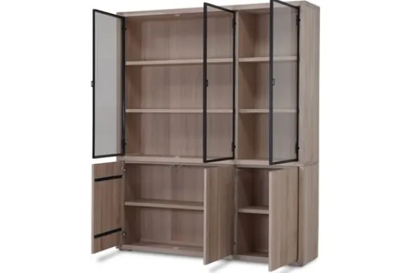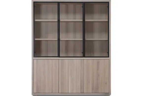 Bergkast Established van het merk Van Dijk Furniture is verkrijgbaar in verschillende kleuren 100% massief eikenhout. Eikenhout leeft en geeft hierdoor karakter aan jouw meubelstuk. Daarnaast is elk stuk uniek door de nerven en noesten. Deze kast heeft onderin drie deuren en hierboven zes open vakken achter glazen deuren. Veel display en opbergmogelijkheden dus! De dichte deuren zijn te openen met een push to open systeem.
