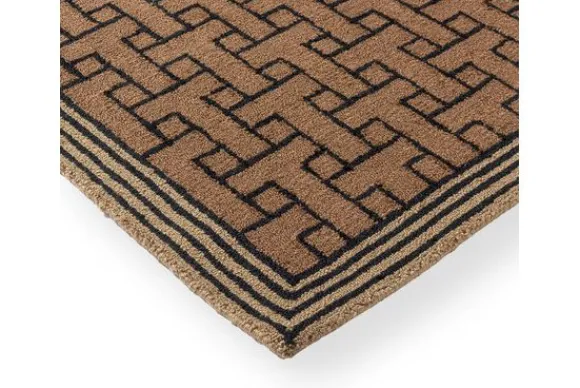 Buitenkleed TB T Monogram Light Brown Outdoor 455811 van het merk Brink & Campman is een echte sfeermaker voor binnen én buiten. Het kleed heeft een stijlvol geweven patroon in bruin, omlijst met een subtiele gestreepte rand in beige. Elegant, speels en met een vleugje retro charme.
