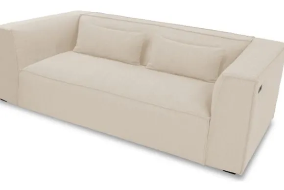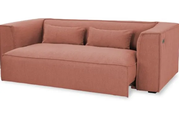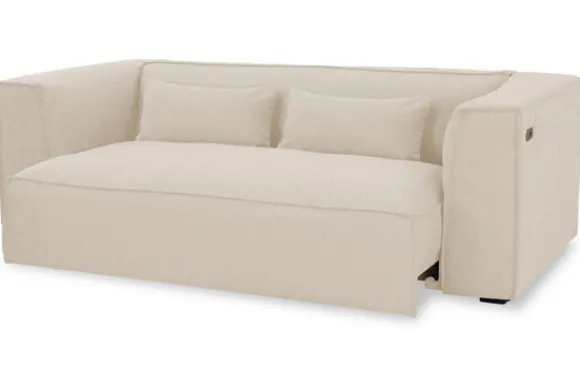 Bankstel Valentina is uit te breiden met een elektrisch uitschuifbare zitting. Hiermee vergroot je de zitdiepte eenvoudig van 68 cm naar 93 cm. Dit creëert een royale loungeplek waarin je comfortabel languit kunt zitten. De bank wordt geleverd inclusief de afgebeelde sierkussens.
