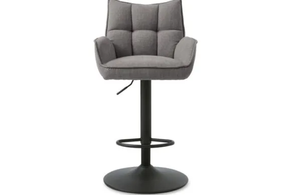 Barkruk Zoltan van het merk Nordic Style is een stijlvolle blikvanger die comfort en karakter moeiteloos combineert. De zachte stof TOP 455 Graphite met opvallende capitonnering geeft de zitting een luxe, bijna kussenzachte uitstraling, terwijl de afgeronde armleuningen en hoge rug zorgen voor extra steun en elegantie.