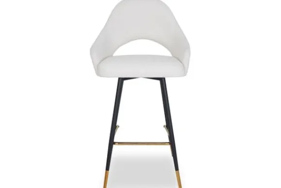 Deze barkurk wordt standaard uitgevoerd met metalen poten in de kleur zwart en gouden details.