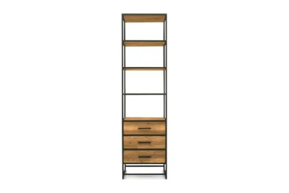 Boekenkast Felino FI 0047 van het merk Tower Living is onderdeel van een compleet meubelprogramma. De Felino collectie bestaat volledig uit gerecycled teakhout en is vervolgens afgewerkt met een lichte white wash. Teakhout is van zeer goede kwaliteit, is sterk, duurzaam en het werkt bijna niet. Daarnaast straalt deze houtsoort warmte uit en is elk meubelstuk uniek door de noesten. De poten zijn gemaakt van metaal. Deze kast heeft bovenin vier open vakken en onderin nog drie lades.