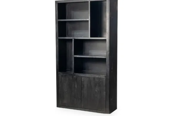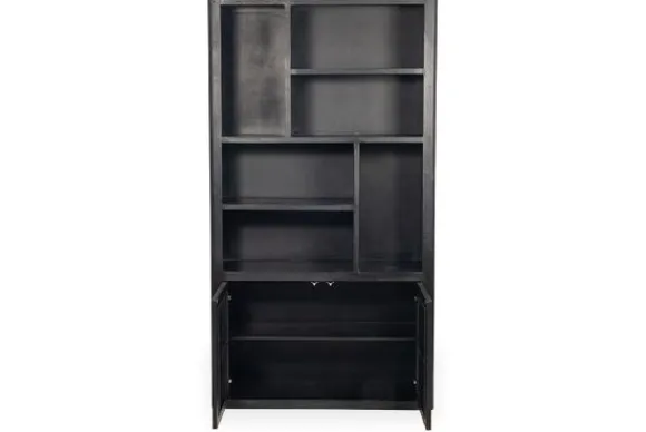 Boekenkast Tenna NL 0087 Zwart van het merk Tower Living is een stoere kast met een moderne uitstraling. De kast is gemaakt van zwart mangohout dat warmte en karakter toevoegt aan je interieur. De verschillende open vakken geven ruimte aan boeken, accessoires en persoonlijke items.