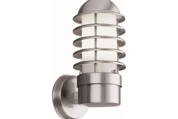 Buitenlamp Louvre 051 van het merk Searchlight is gemaakt van RVS met een satijnwitte glazen kap. Dit simpele, maar stijlvolle design staat goed in elke tuin.