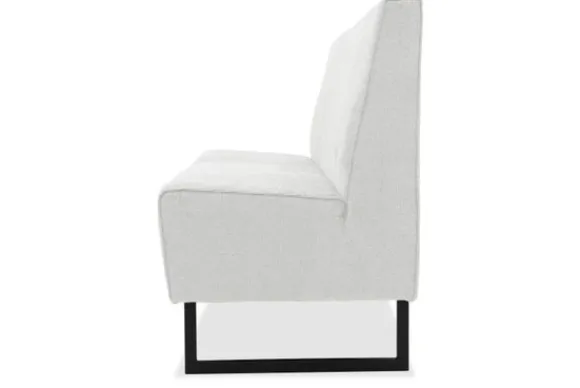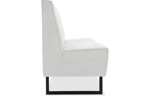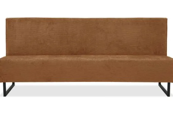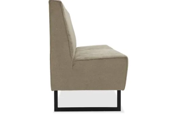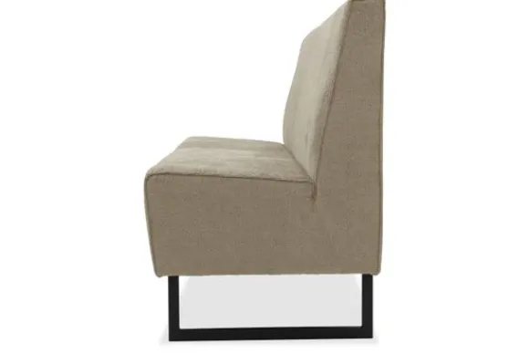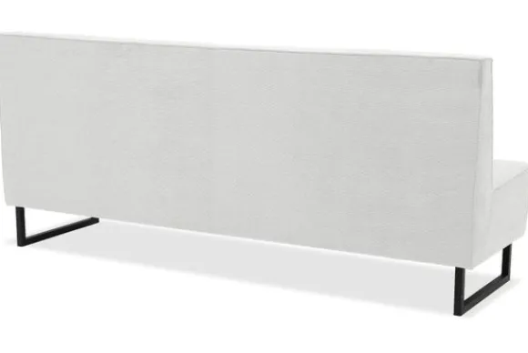 Eetbank Madelon is volledig naar wens samen te stellen. Kies zelf je afmeting, opstelling, stiknaden of een bijzondere afwerking van de rugleuning. Deze eetbank wordt standaard geleverd met slanke metalen sledepoten, maar je kunt ook kiezen voor een ander onderstel dat beter past bij jouw stijl.