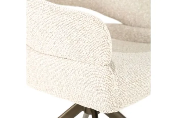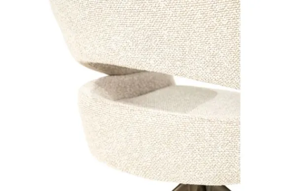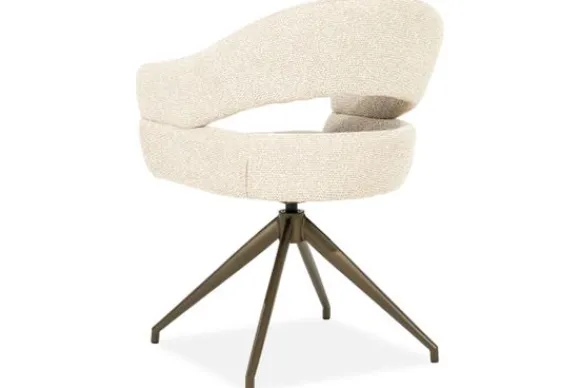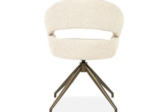 Het stevige metalen onderstel in bronskleur heeft een moderne spinvorm die stabiliteit en elegantie combineert. Een perfecte match voor wie comfort en design wil samenbrengen in één stoel.